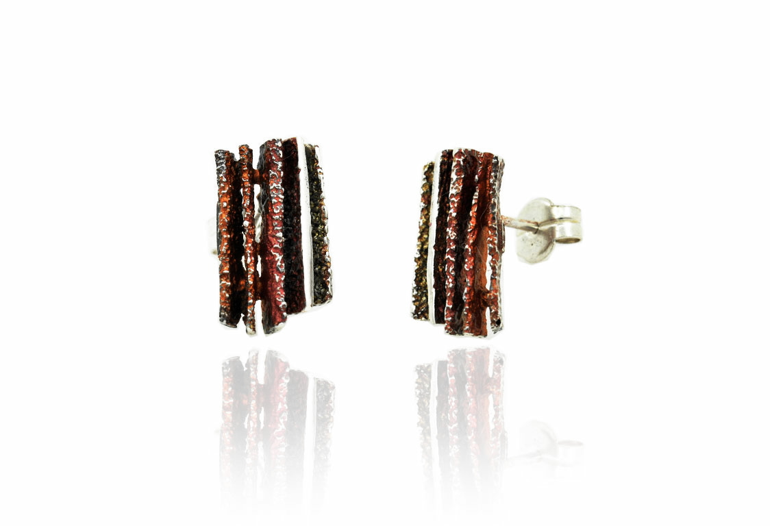 Pendientes de plata con pigmentos en tonos marrones y ocres de la marca arior